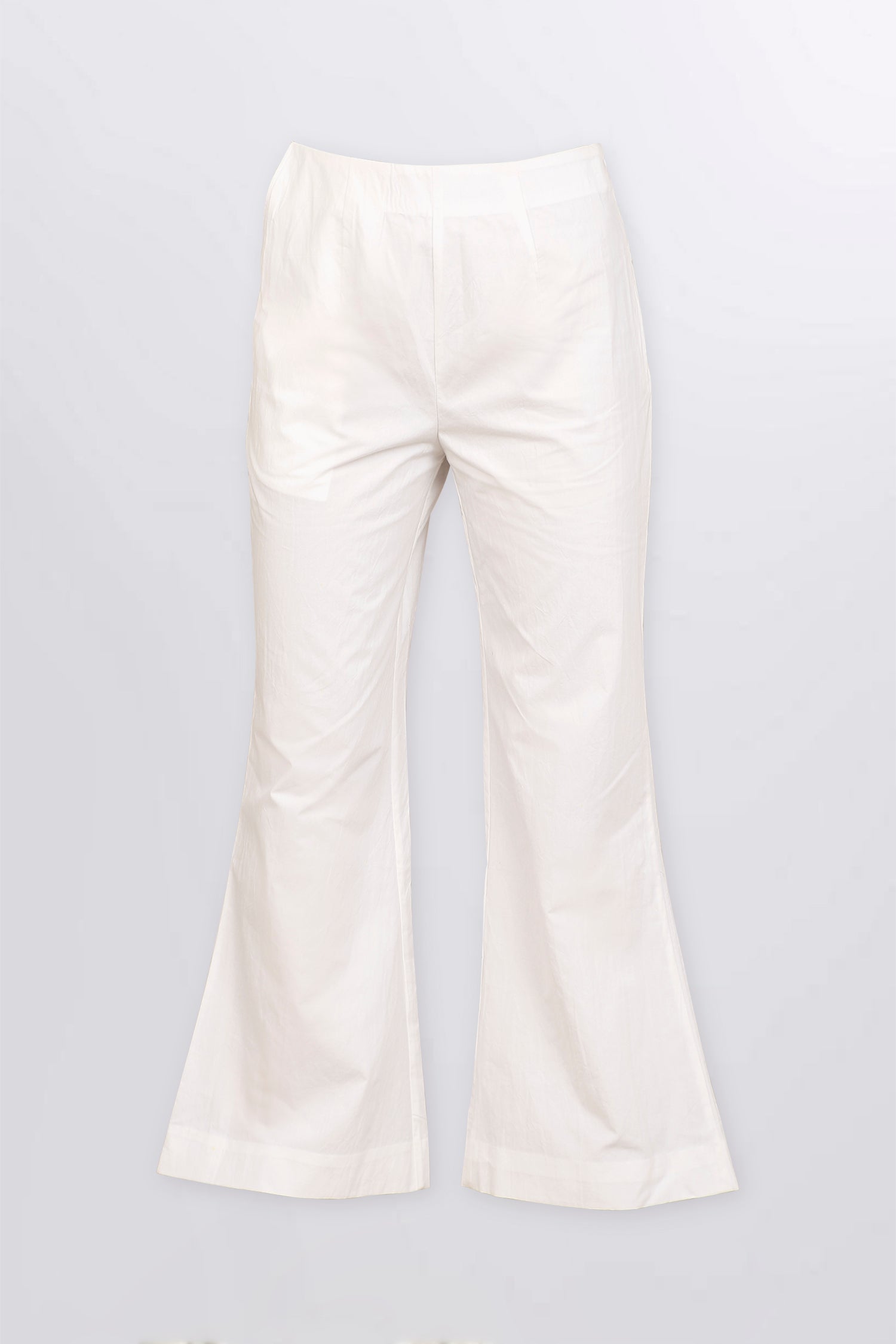 Introducing our white bootcut pants, crafted from organic cotton for summer. Stylish and breathable, they offer a flattering silhouette with a slight flare at the hem, perfect for effortless summer elegance.